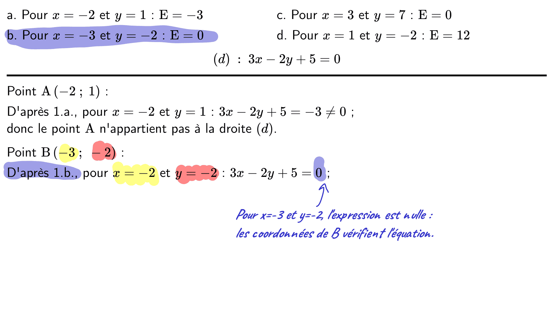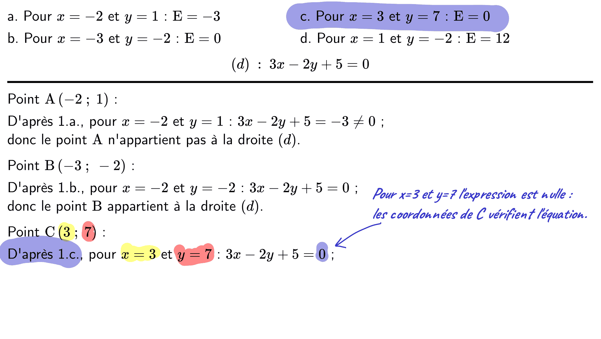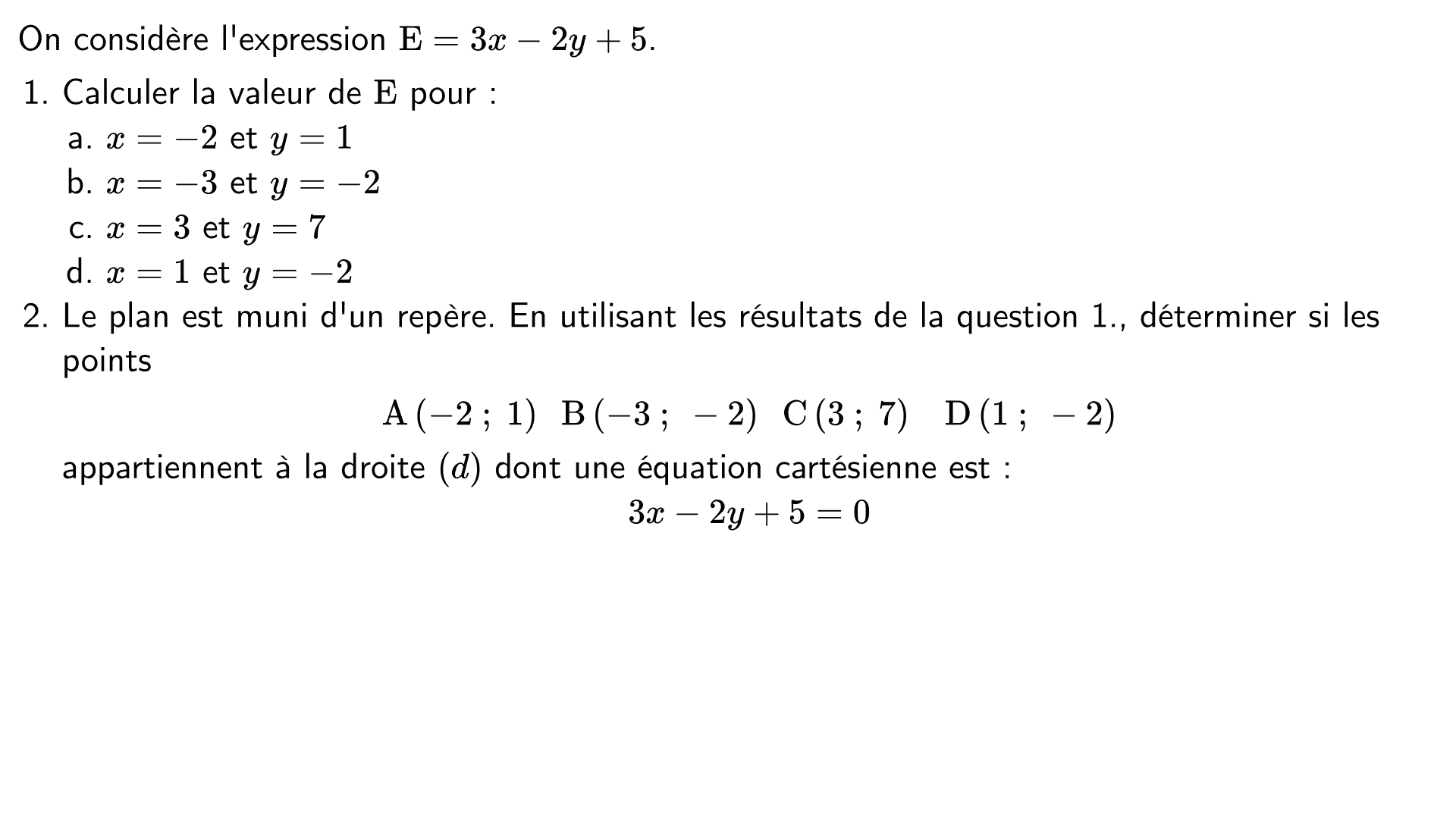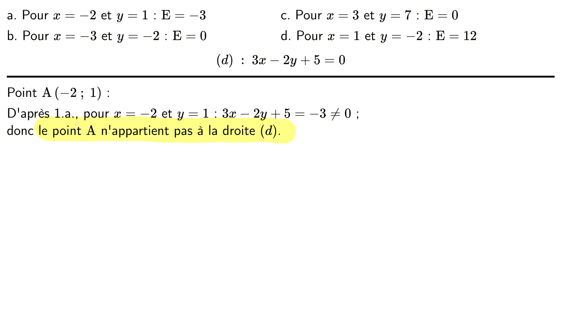 appartiennent à la droite $(d)$ dont une équation cartésienne est :