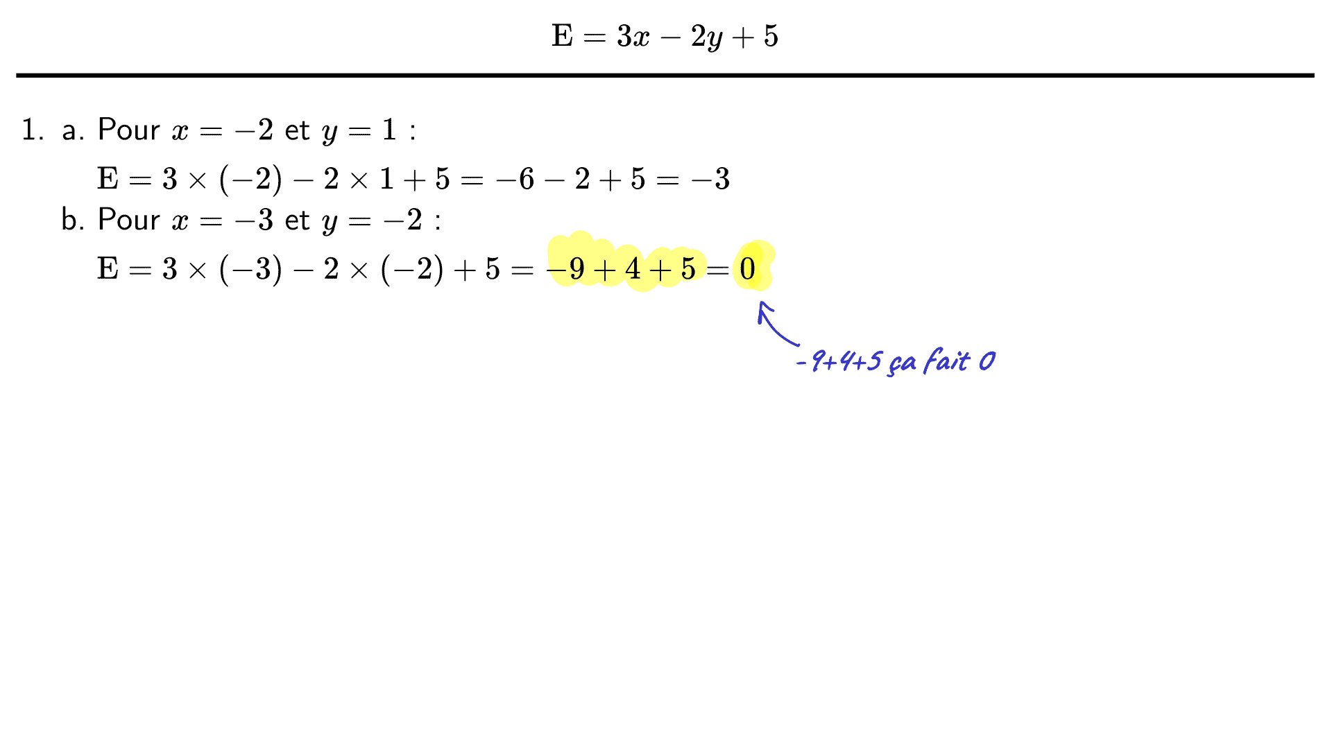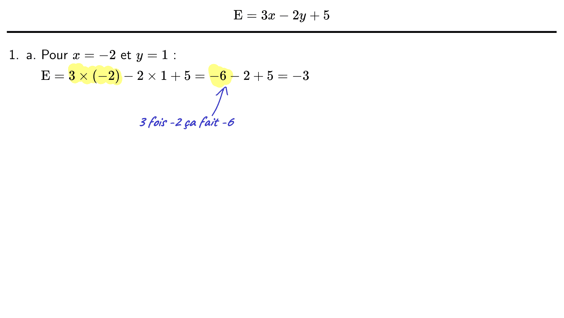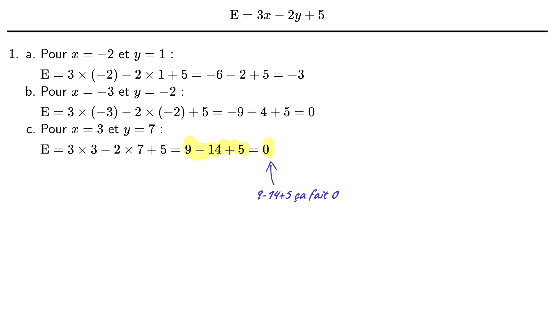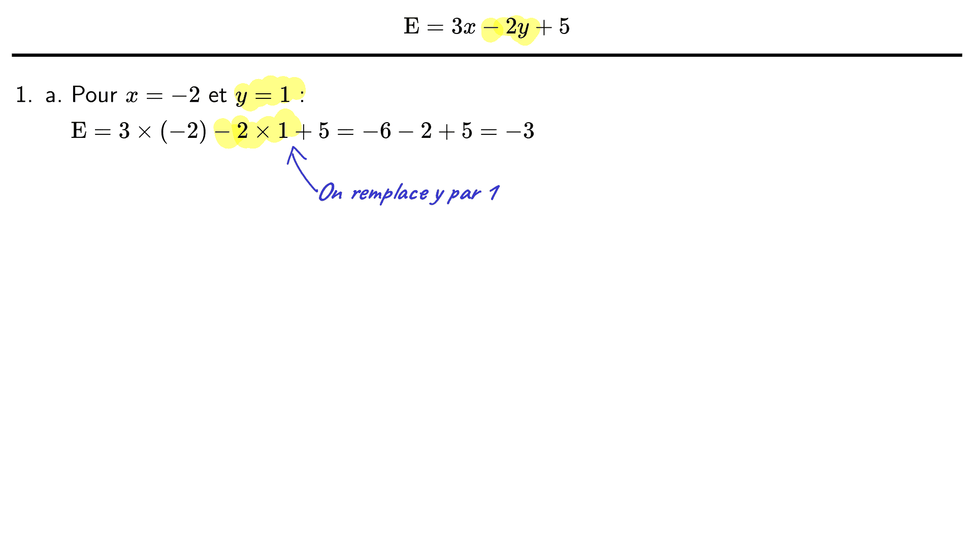 On considère l'expression $\mathrm{E}=3x-2y+5$.