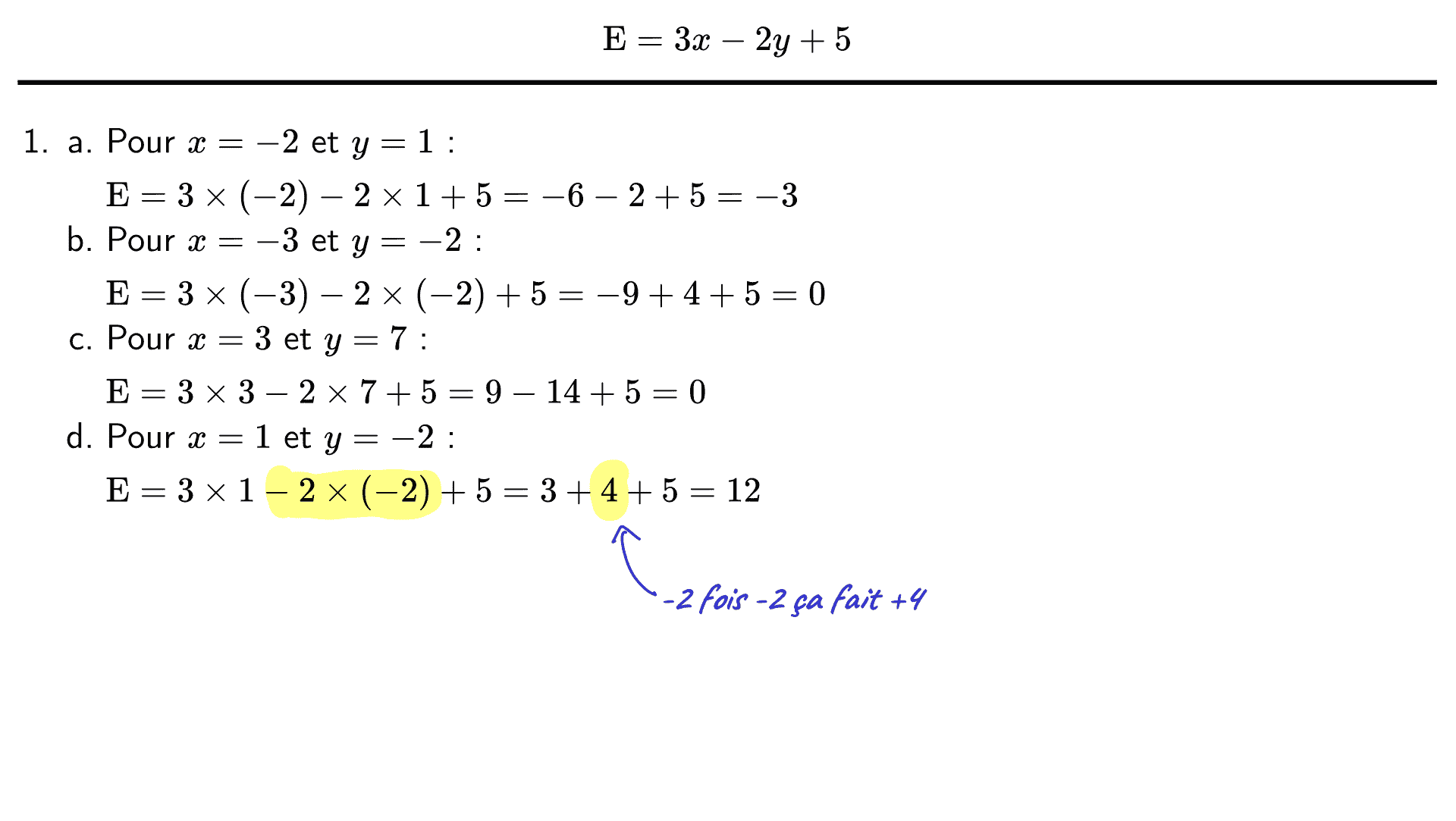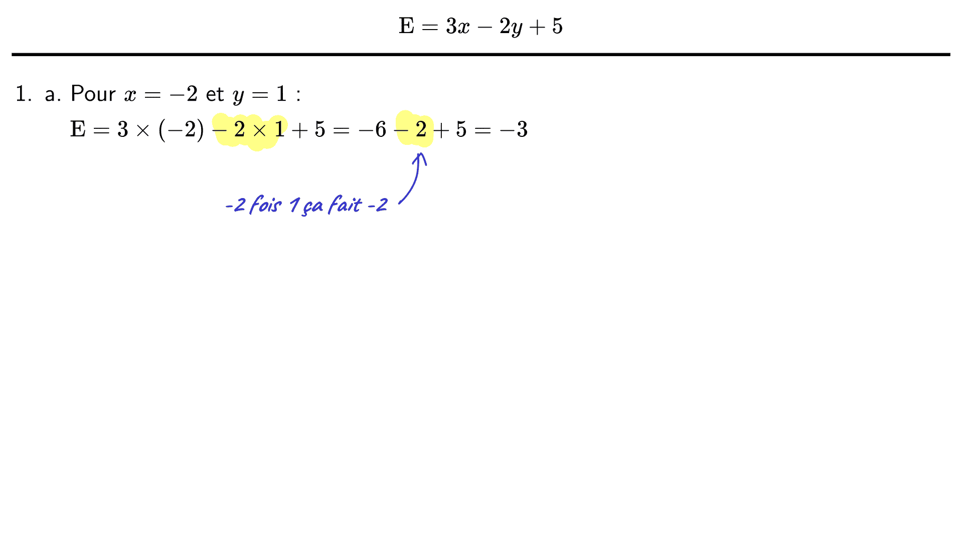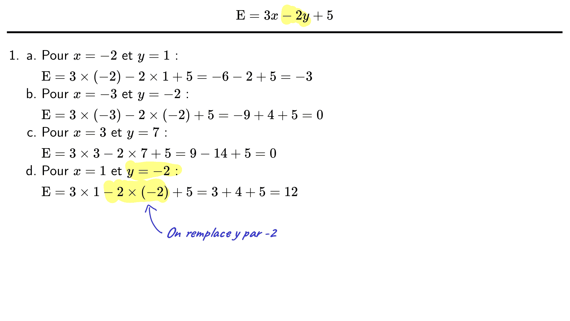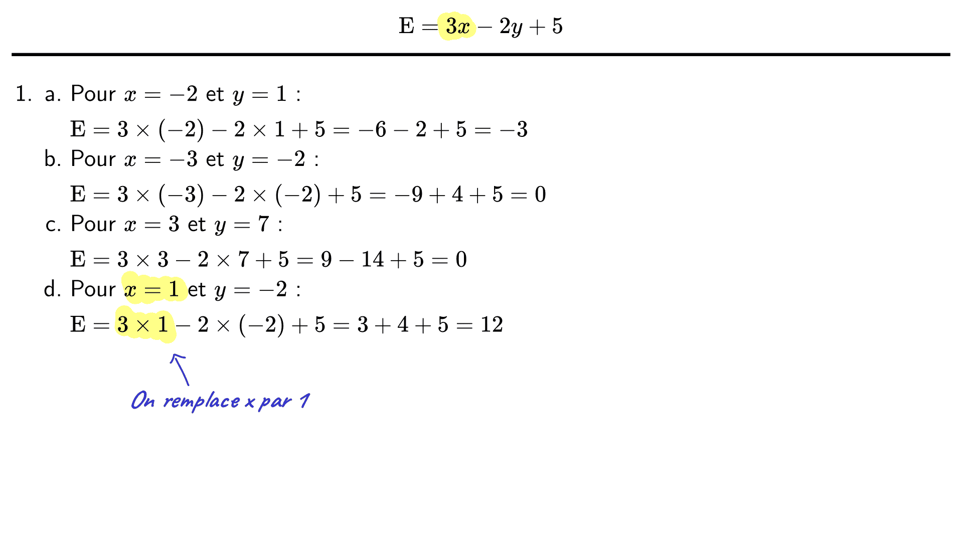 On considère l'expression $\mathrm{E}=3x-2y+5$.