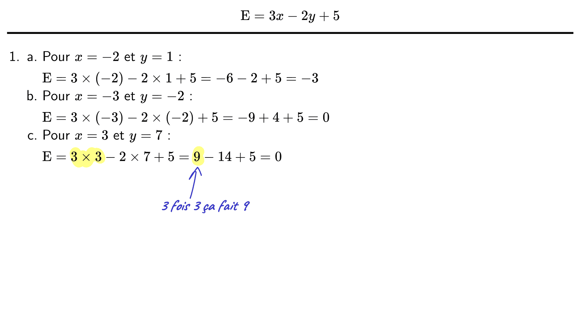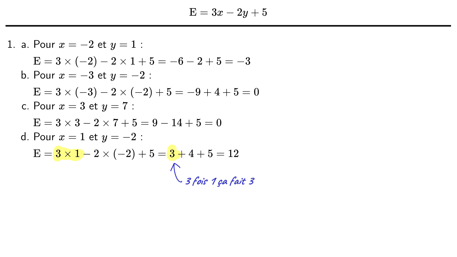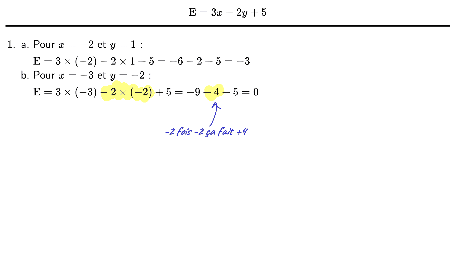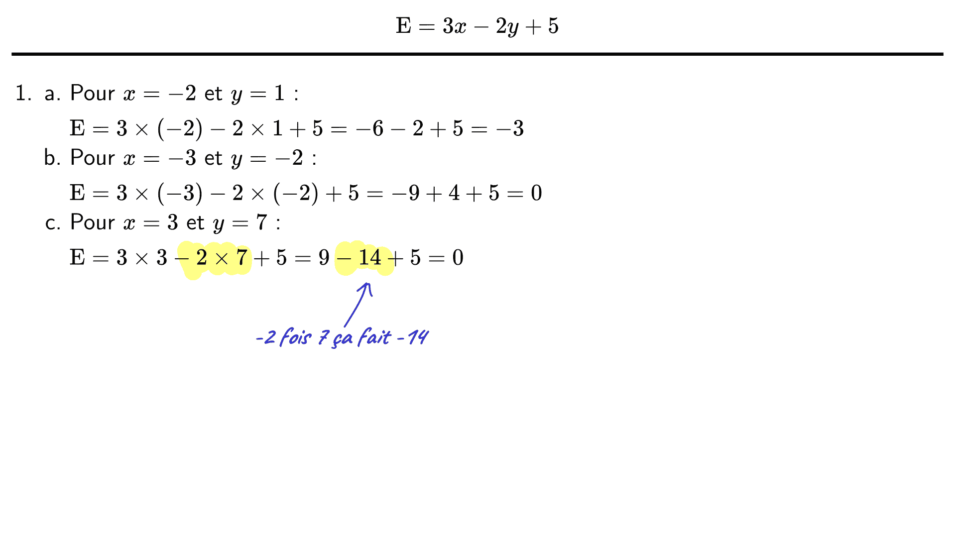 On considère l'expression $\mathrm{E}=3x-2y+5$.