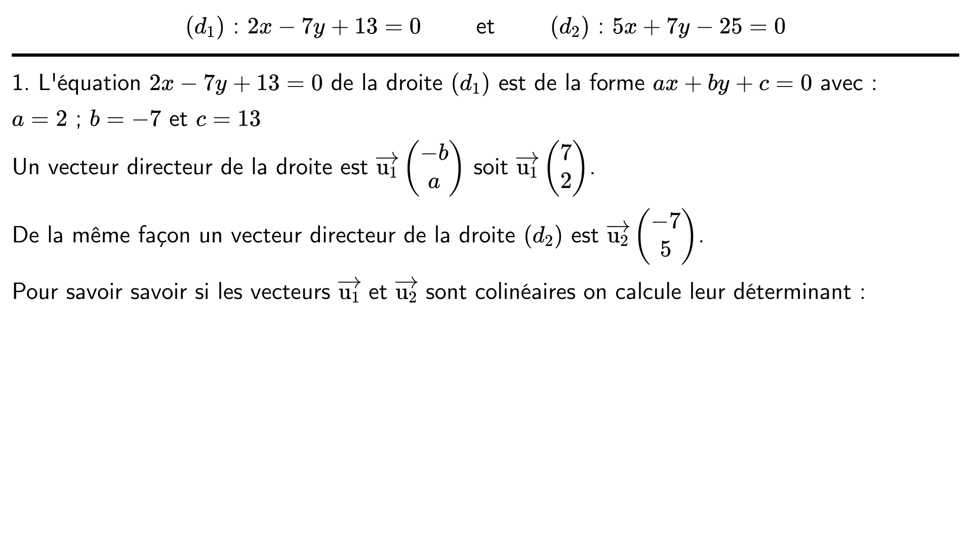 Déterminer les coordonnées d'un vecteur directeur de chacune des droites.