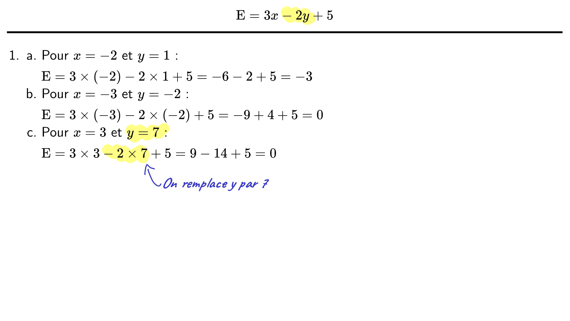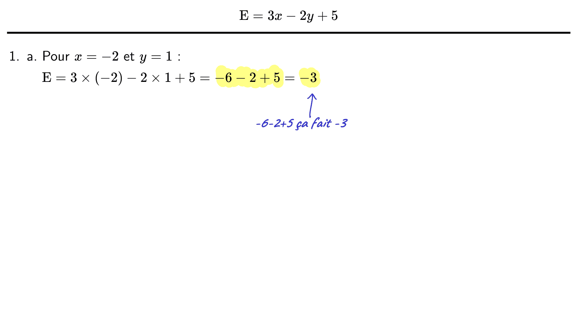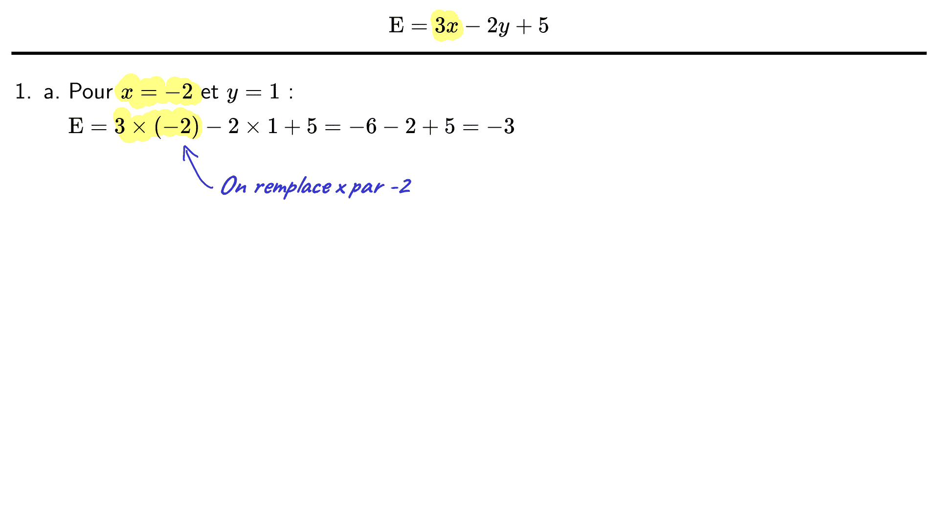 On considère l'expression $\mathrm{E}=3x-2y+5$.