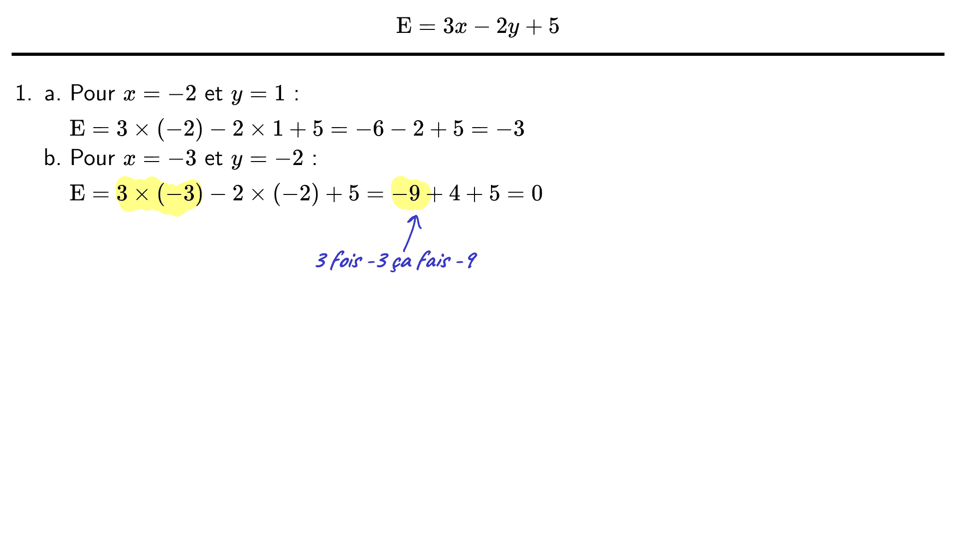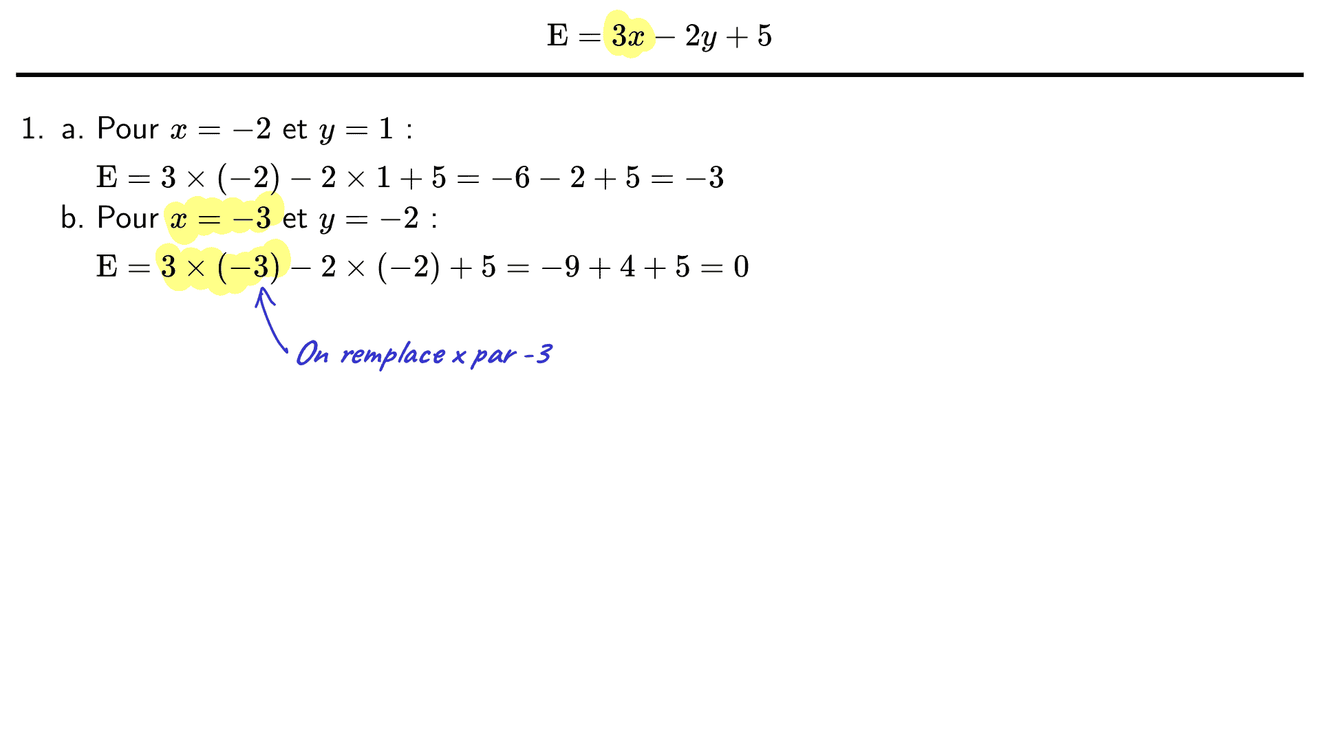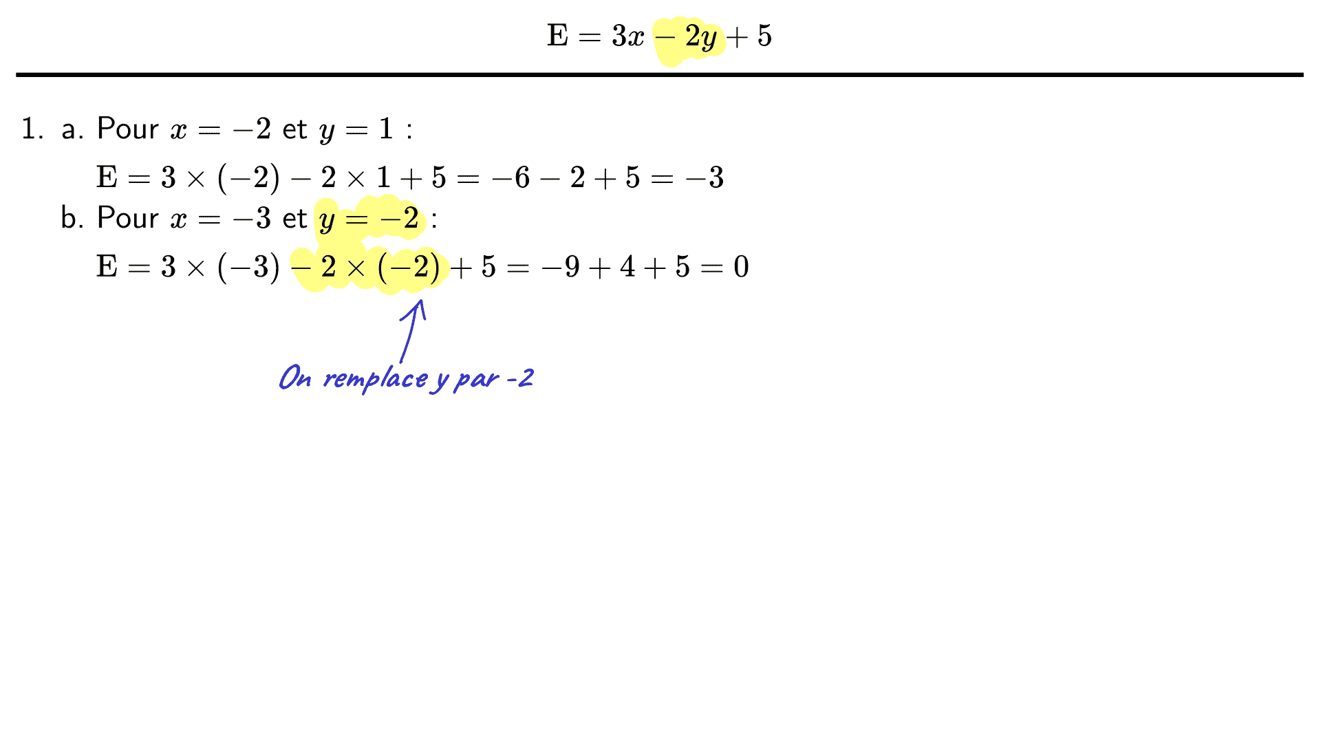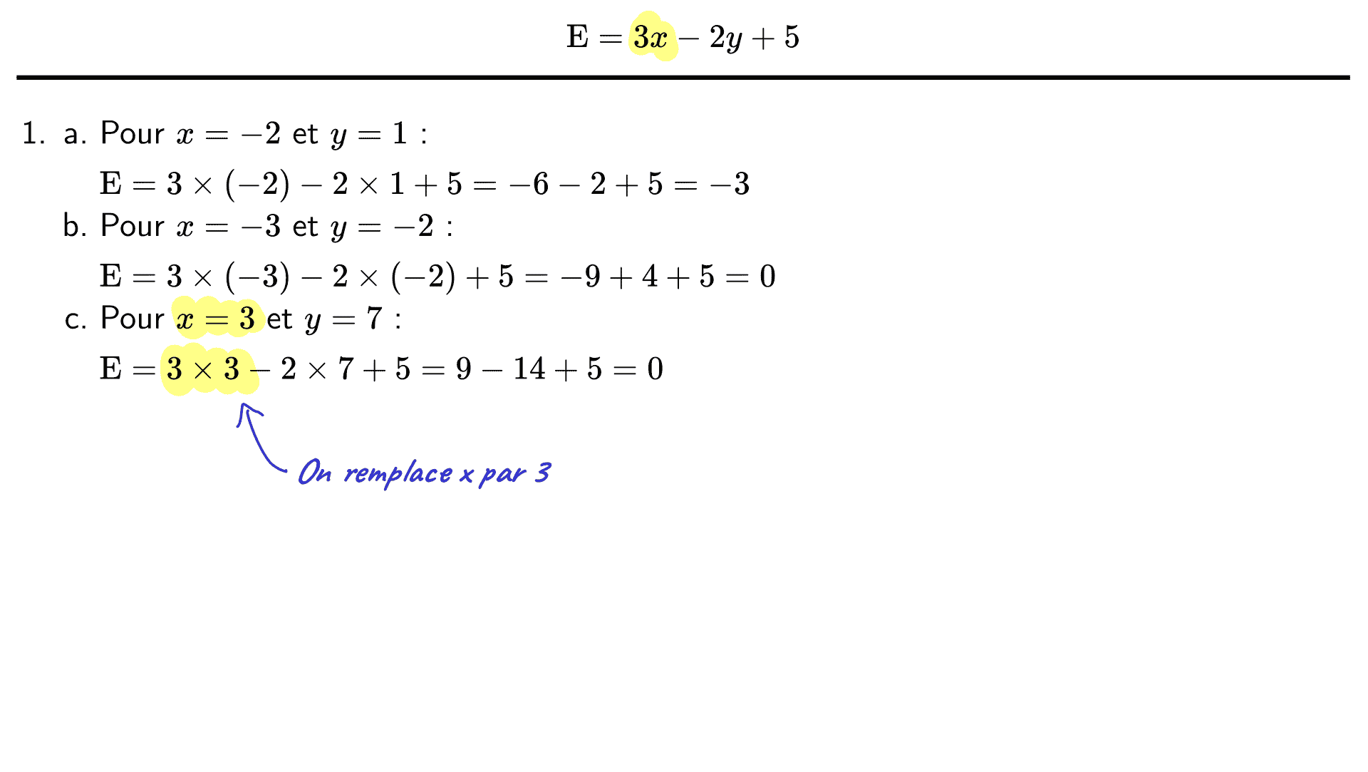 On considère l'expression $\mathrm{E}=3x-2y+5$.