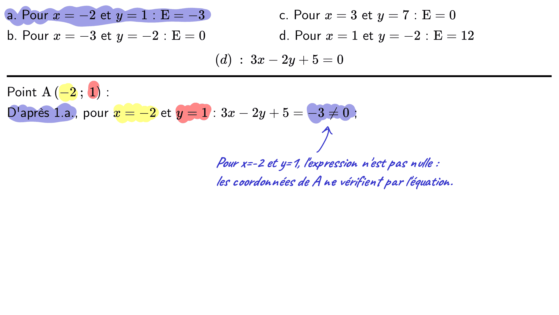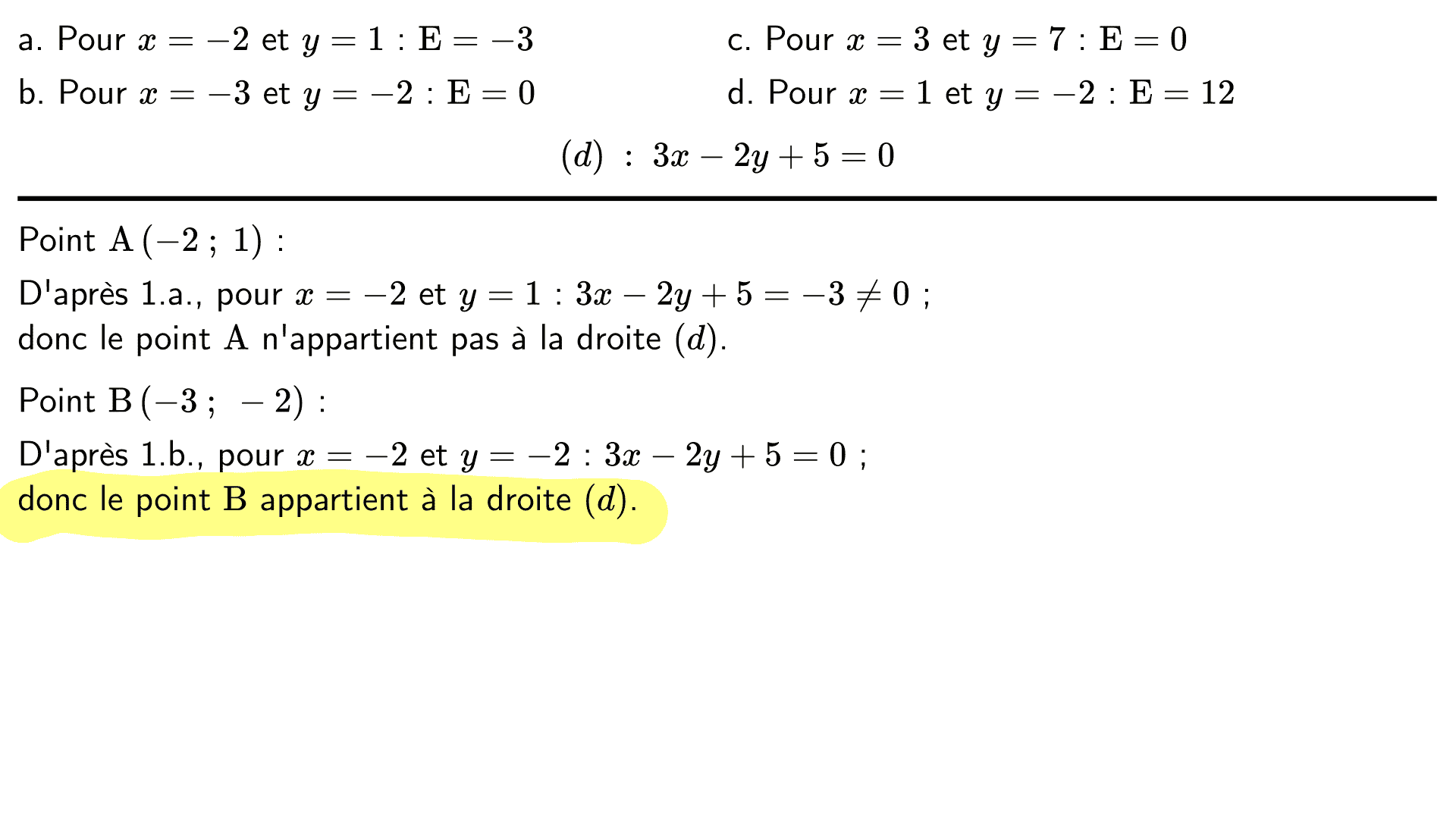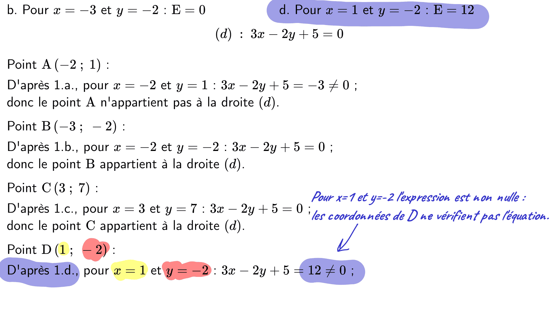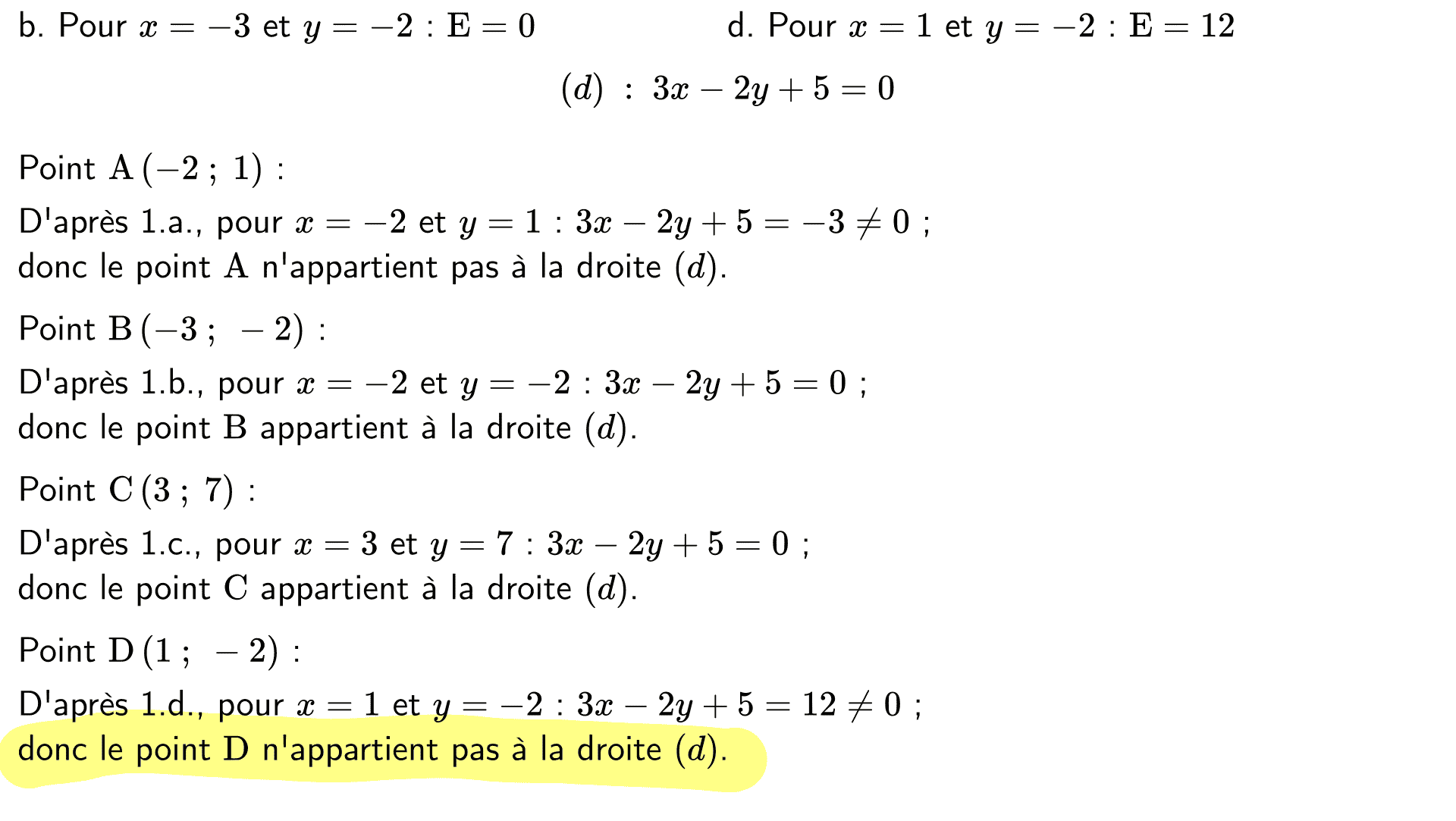 appartiennent à la droite $(d)$ dont une équation cartésienne est :