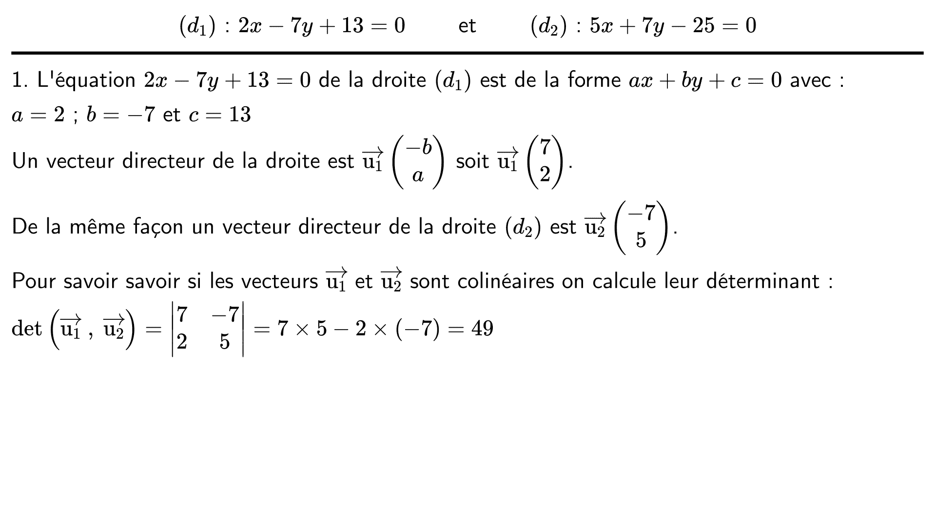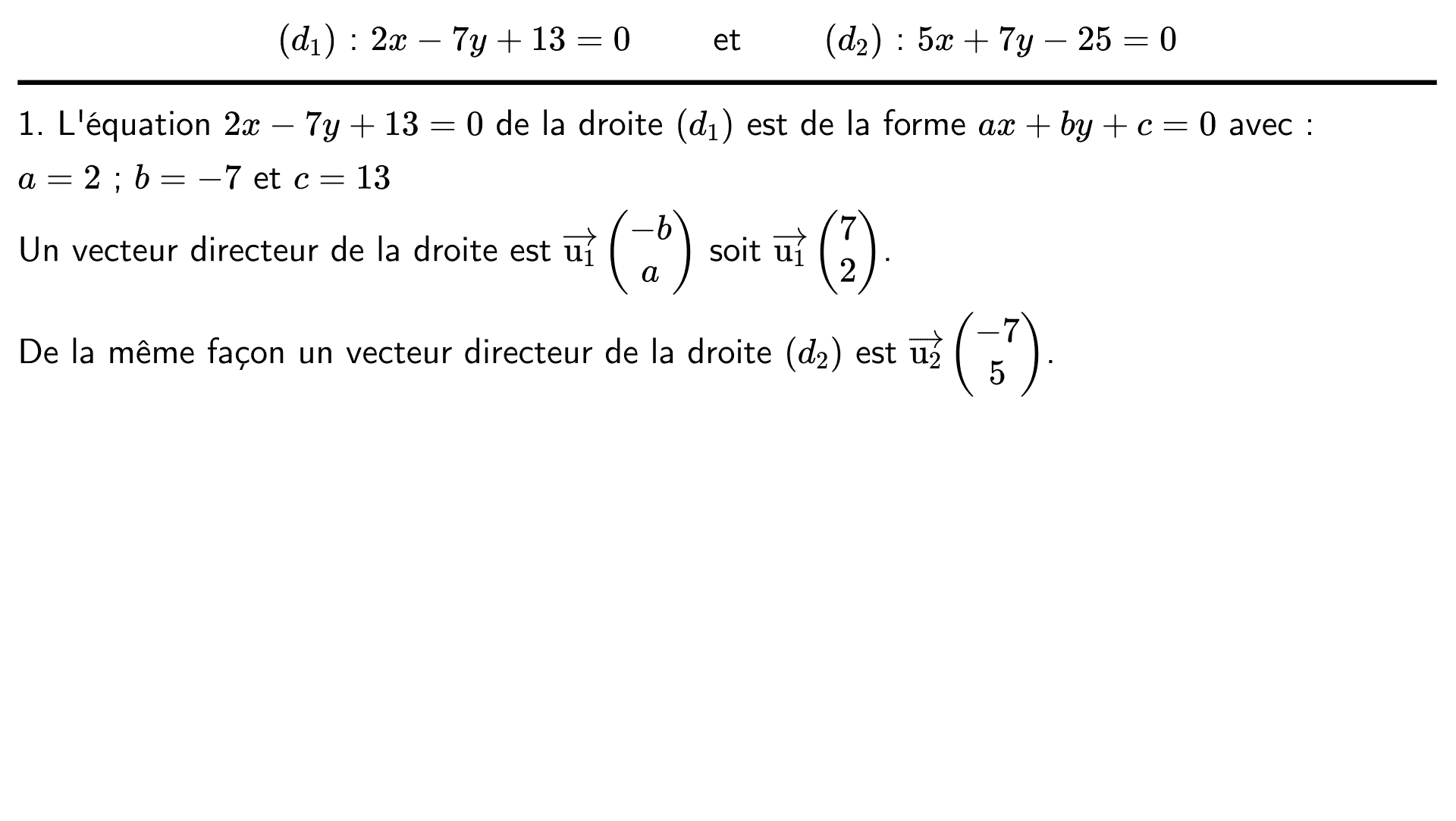Déterminer les coordonnées d'un vecteur directeur de chacune des droites.